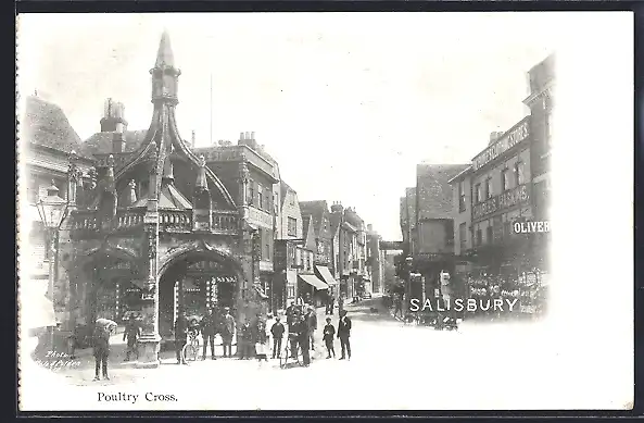 AK Salisbury, Poultry Cross steet scene with bystanders