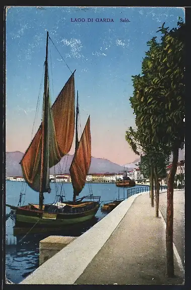 AK Salò, Lago di Garda, Segelboot an der Kaimauer