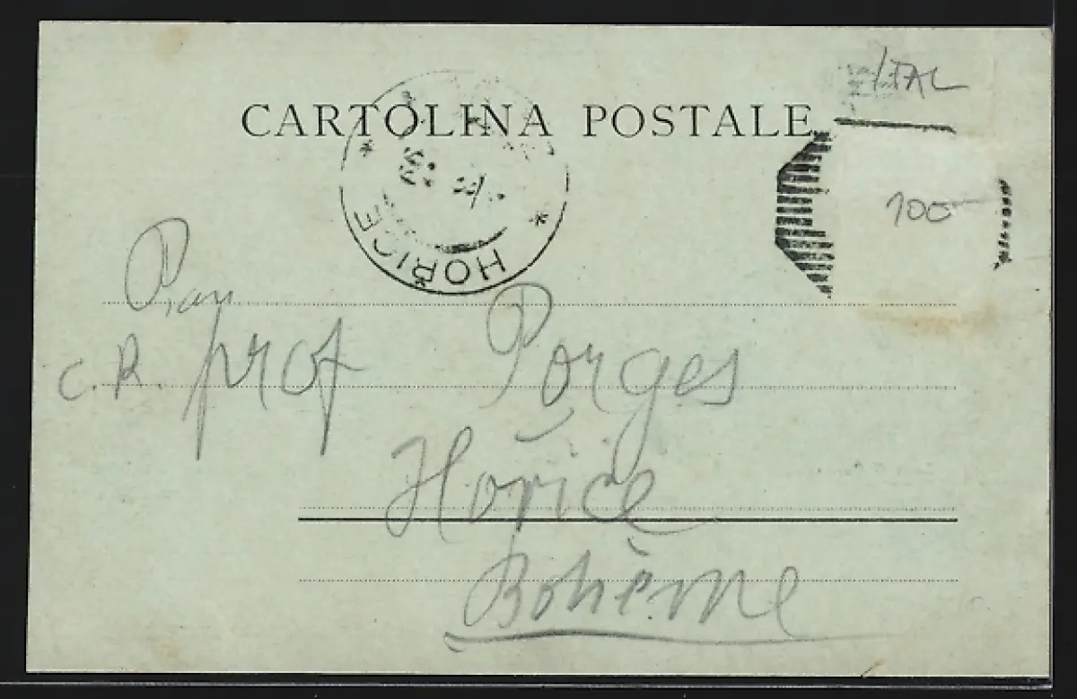 gelaufen 1899, Briefmarke entfernt, rückseitig Oberflächenschaden, Eckknick re. unten, Bugspur li. oben, guter Zustand
