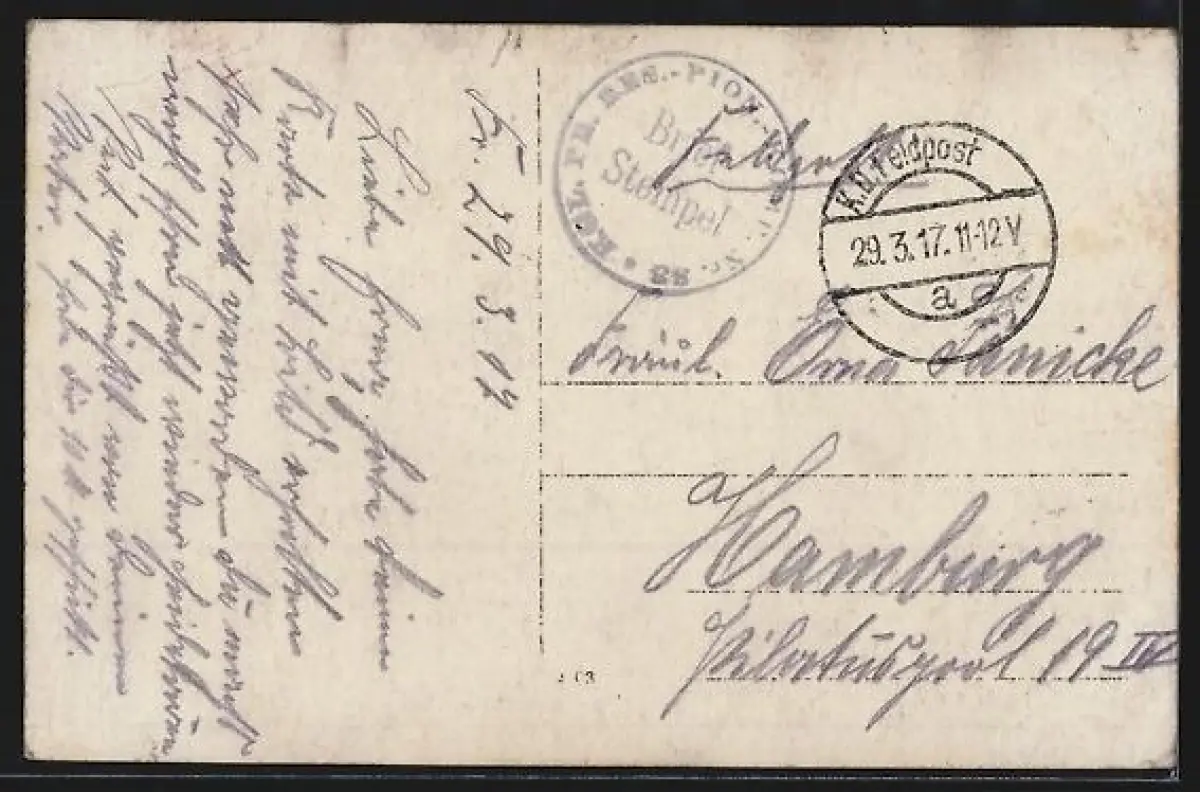 alte Ansichtskarte, gelaufen 1917, Eckknicke li. unten u. re. oben, guter Zustand