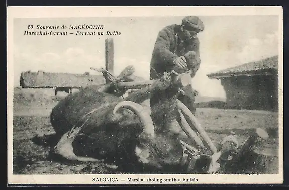 AK Salonica, Marshal sholing smith a buffalo, Hufschmied bei der Arbeit