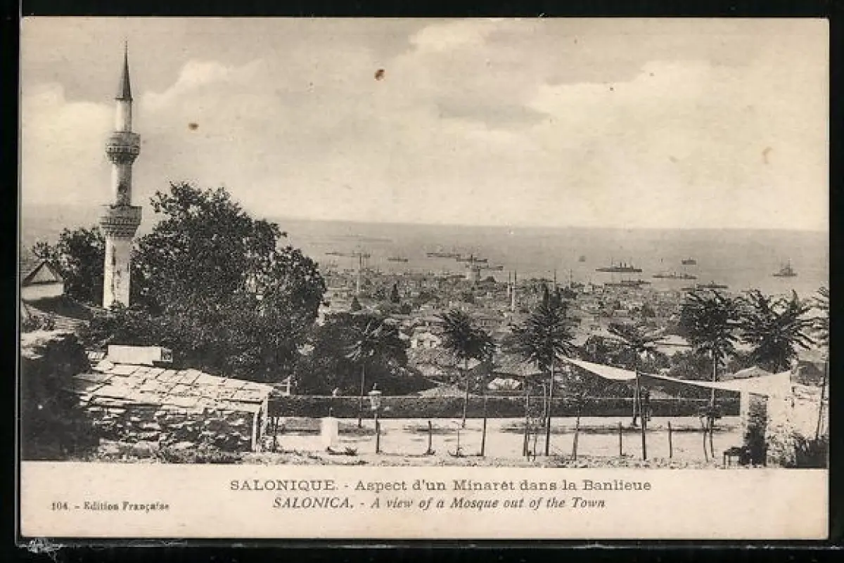 AK Salonique, Aspect d`un Minaret dans la Banlieue
