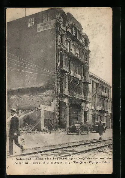 AK Salonique, Incendie des 18-20 Aout 1917, Les Quais Olympos-Palace