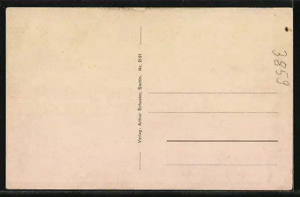 Personenbezogene Daten auf der Rückseite der Karte wurden durch blauen Textmarker unkenntlich gemacht. Die blauen Stellen sind auf die Vorderseite durchgeweicht und wirken sich negativ auf das Postkartenfoto aus