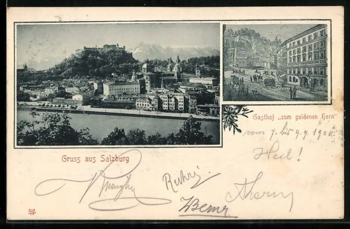 AK Salzburg, Gasthof zum goldenen Horn, Ortsansicht