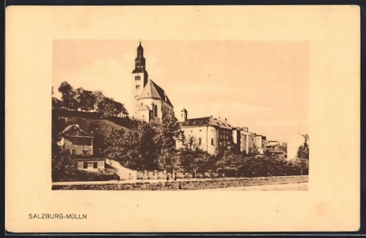 AK Salzburg-Mülln, Ortspartie mit Kirche