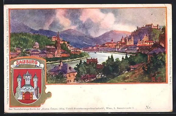 AK Salzburg, Teilansicht mit Flusspartie