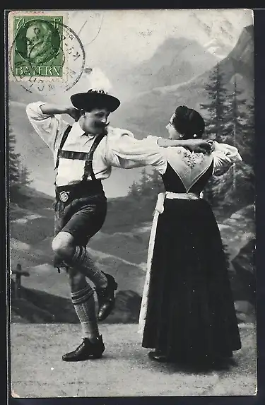 AK Salzburger Almtanz, Paar in Tracht beim Volkstanz