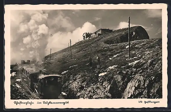 AK Salzkammergut, Schafbergbahn mit Hotel Schafbergspitze