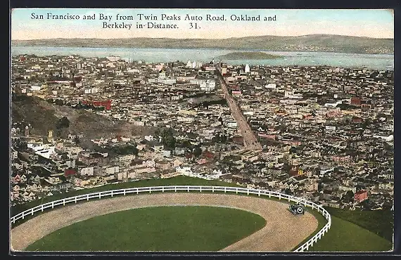 AK San Francisco, CA, General view and Bay from Twin Peaks, Oakland and Berkeley in distance