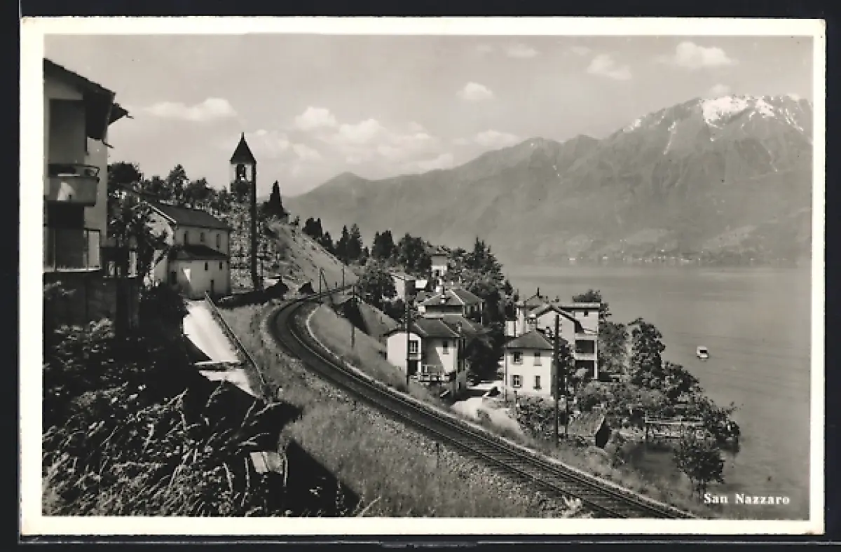 AK San Nazzaro /Lago Maggiore, Bahngleise im Ort mit Blick zu den Bergen