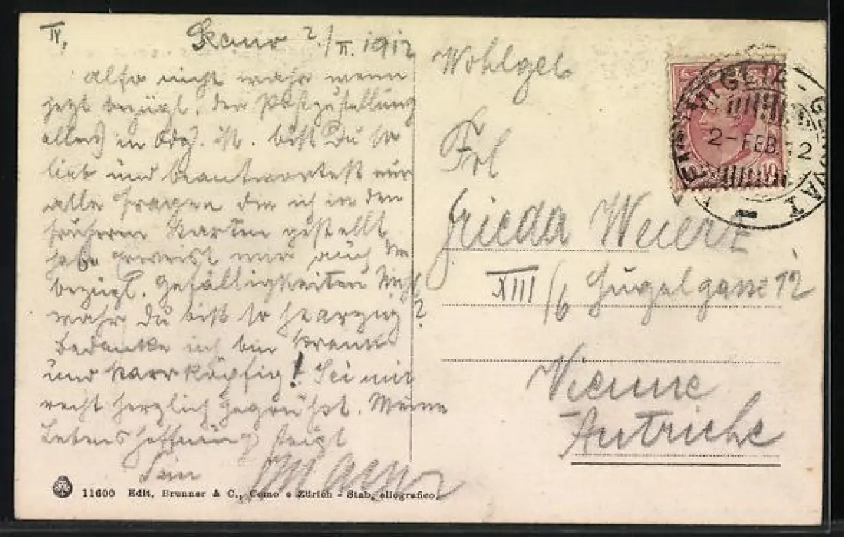 gelaufen 1912, Eckknick li. oben, guter Zustand