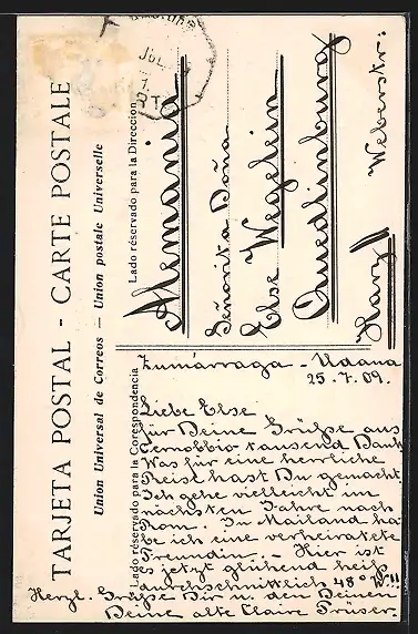 gelaufen 1909, Briefmarke entfernt, guter Zustand