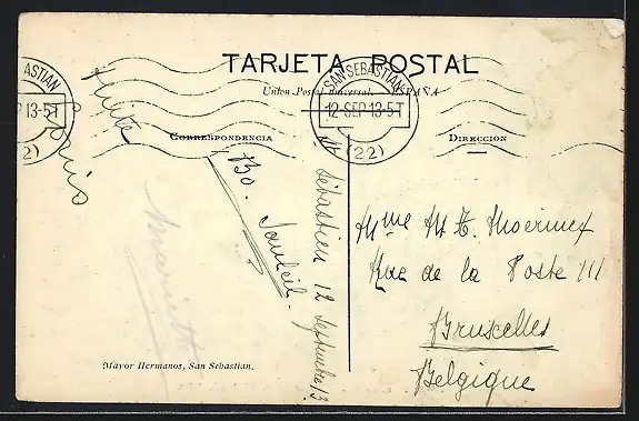 gelaufen 1913, Briefmarke entfernt, rückseitig Oberflächenschaden, Eckknick li. oben, guter Zustand