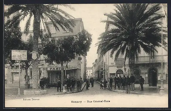 AK Sanary, Rue Général-Rose avec palmiers et passants
