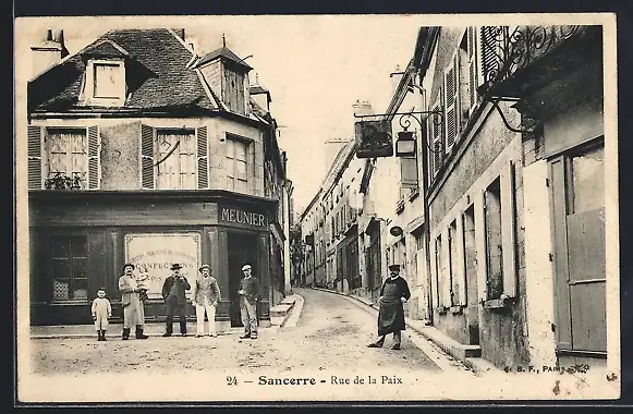 AK Sancerre, Rue de la Paix avec passants devant la boutique Meunier