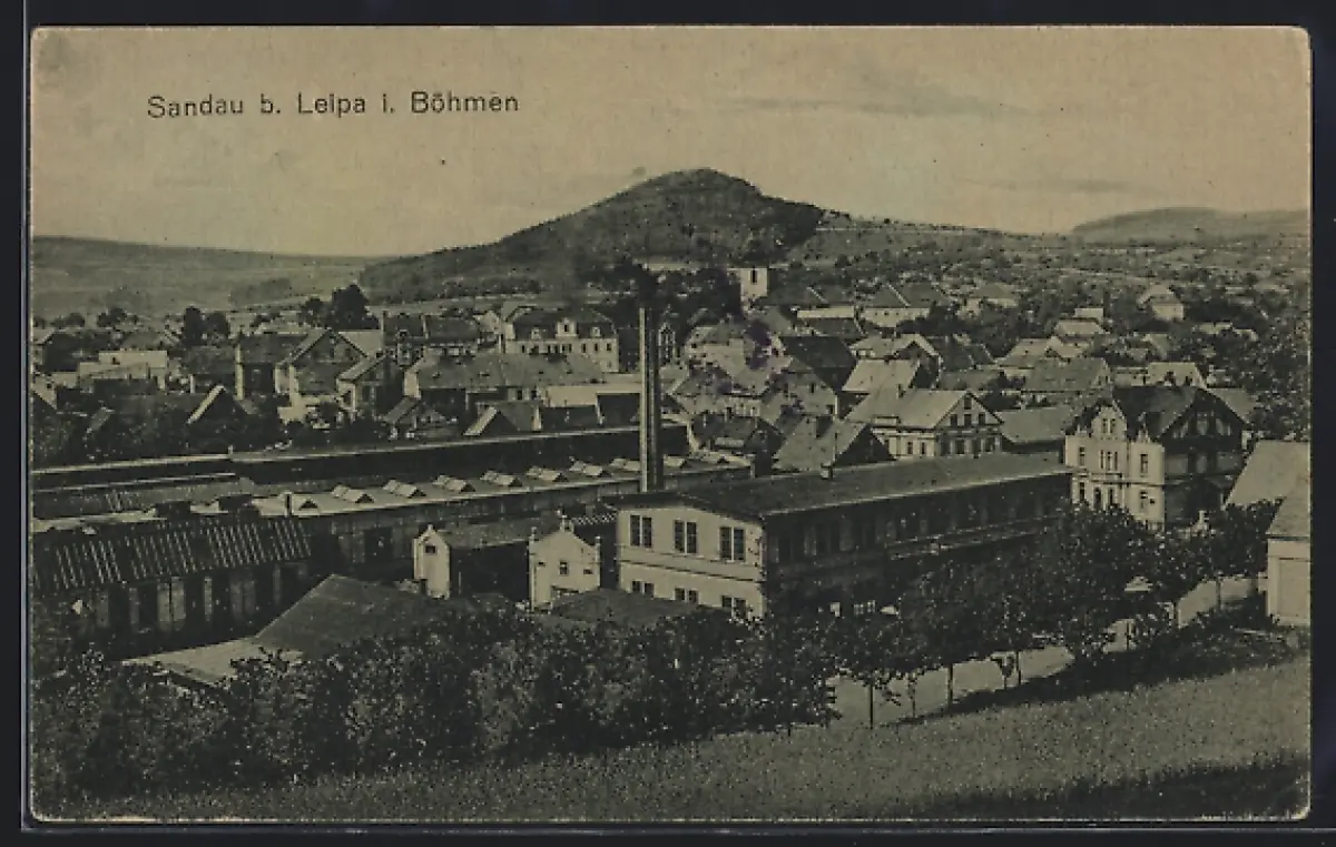 AK Sandau b. Leipa, Panorama mit Fabrik
