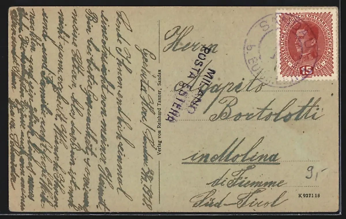 gelaufen 1918, Eckknick li. unten, guter Zustand