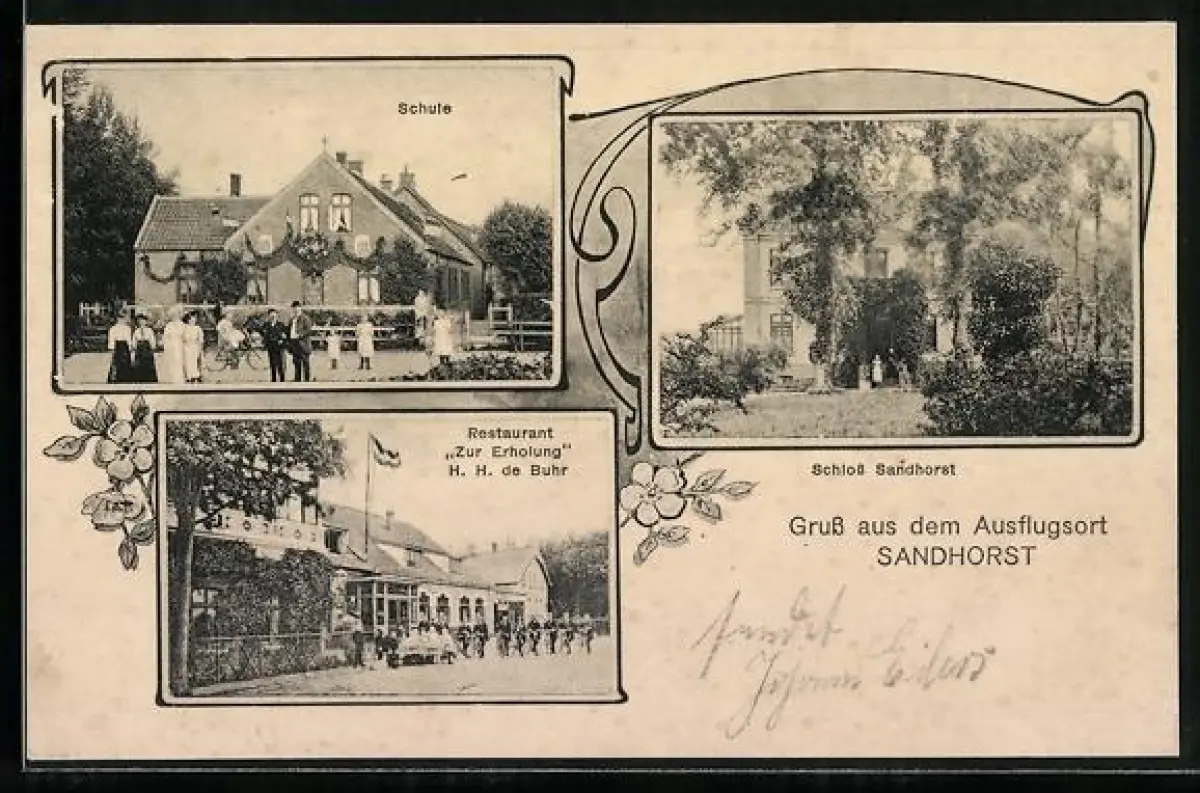 AK Sandhorst, Restaurant Zur Erholung, Inh. H. H. de Buhr, Schloss Sandhorst und Schule