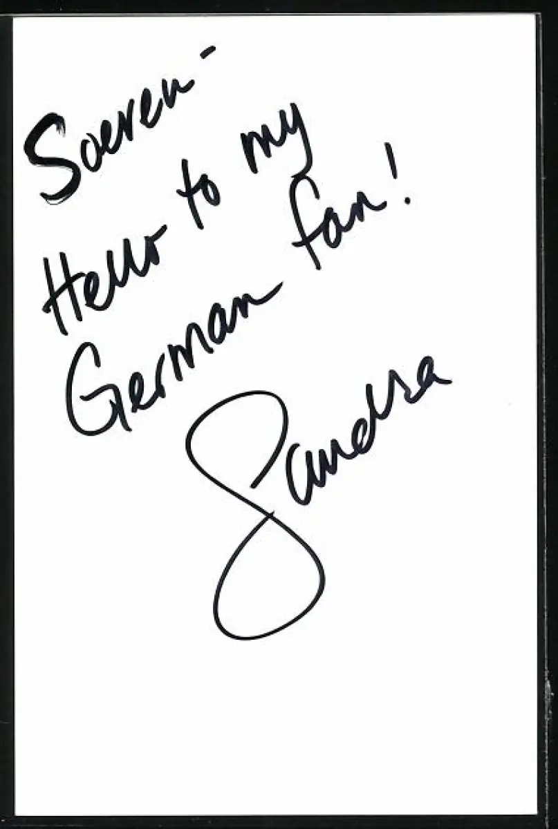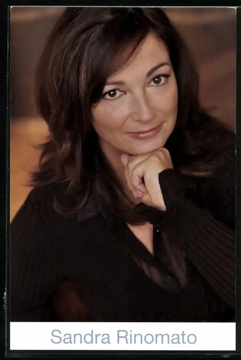 AK Sandra Rinomato mit Hand am Kinn, rückseitig Autograph
