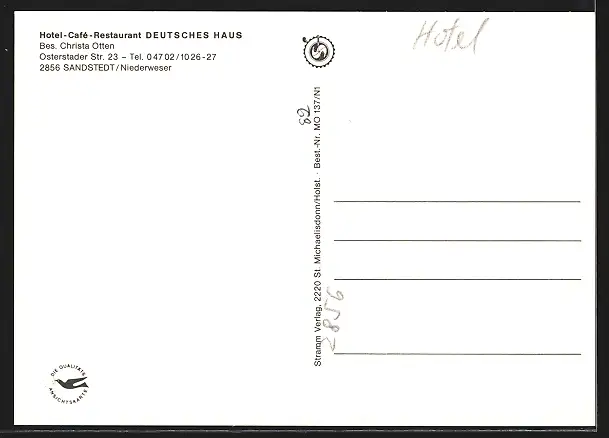 AK Sandstedt /Niederweser, Hotel-Café-Restaurant Deutsches Haus, Inh. Christa Otten, Osterstader Str. 23