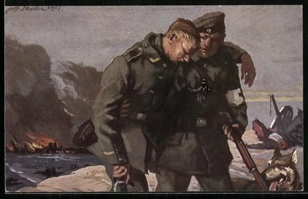 AK Sanitäter hilft dem Verwundeten, Sanitätshund