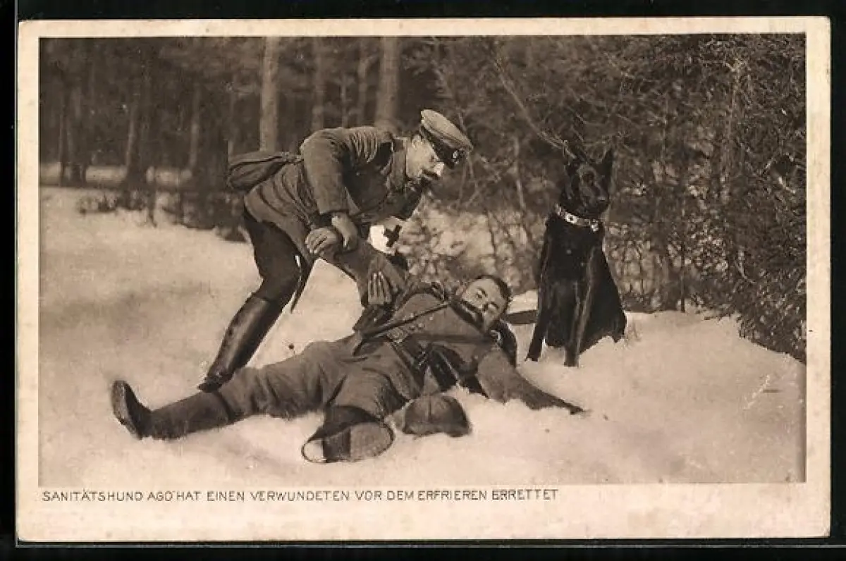 AK Sanitätshund Ago hat einen Verwundeten vor dem Erfrieren errettet