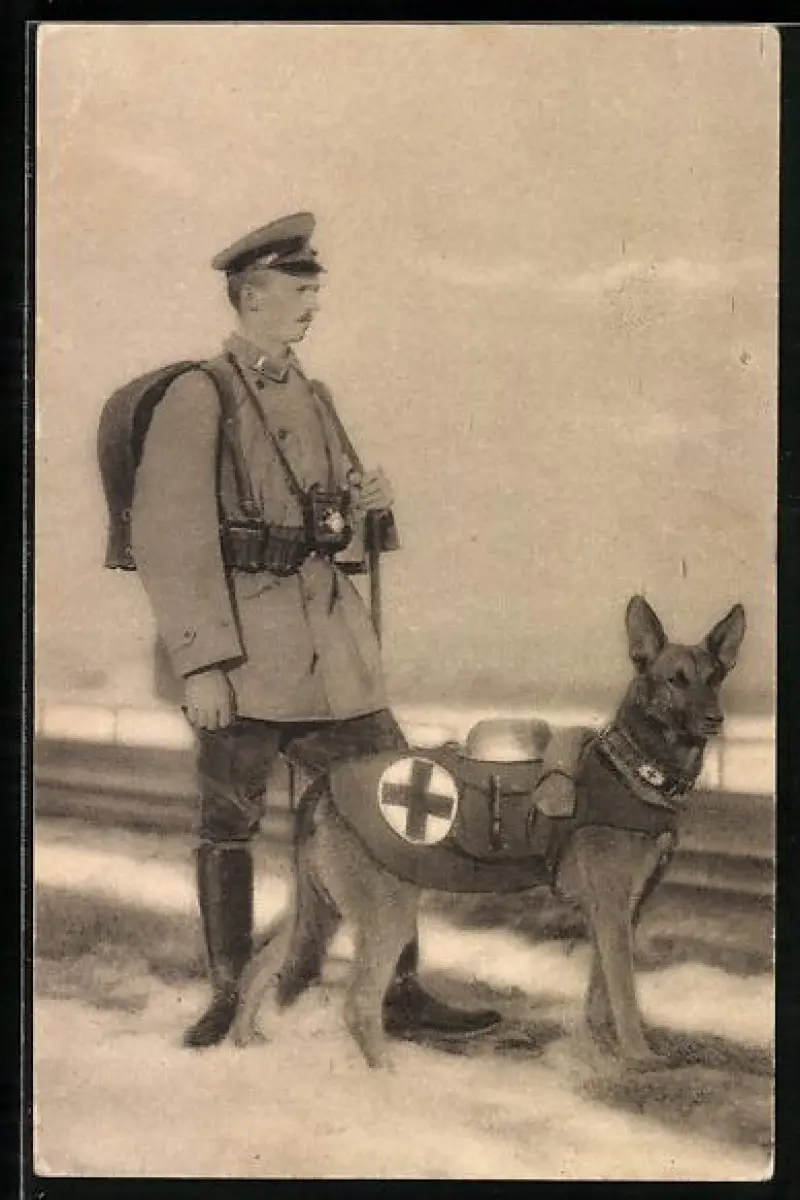 AK Sanitätshund Troll in feldmarschmässiger Ausrüstung mit deinem Führer
