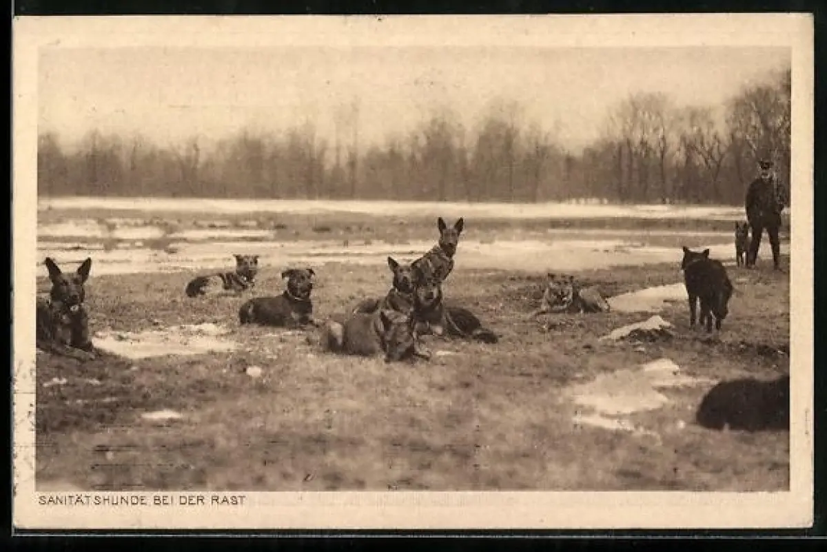 AK Sanitätshunde bei der Rast auf einer Wiese