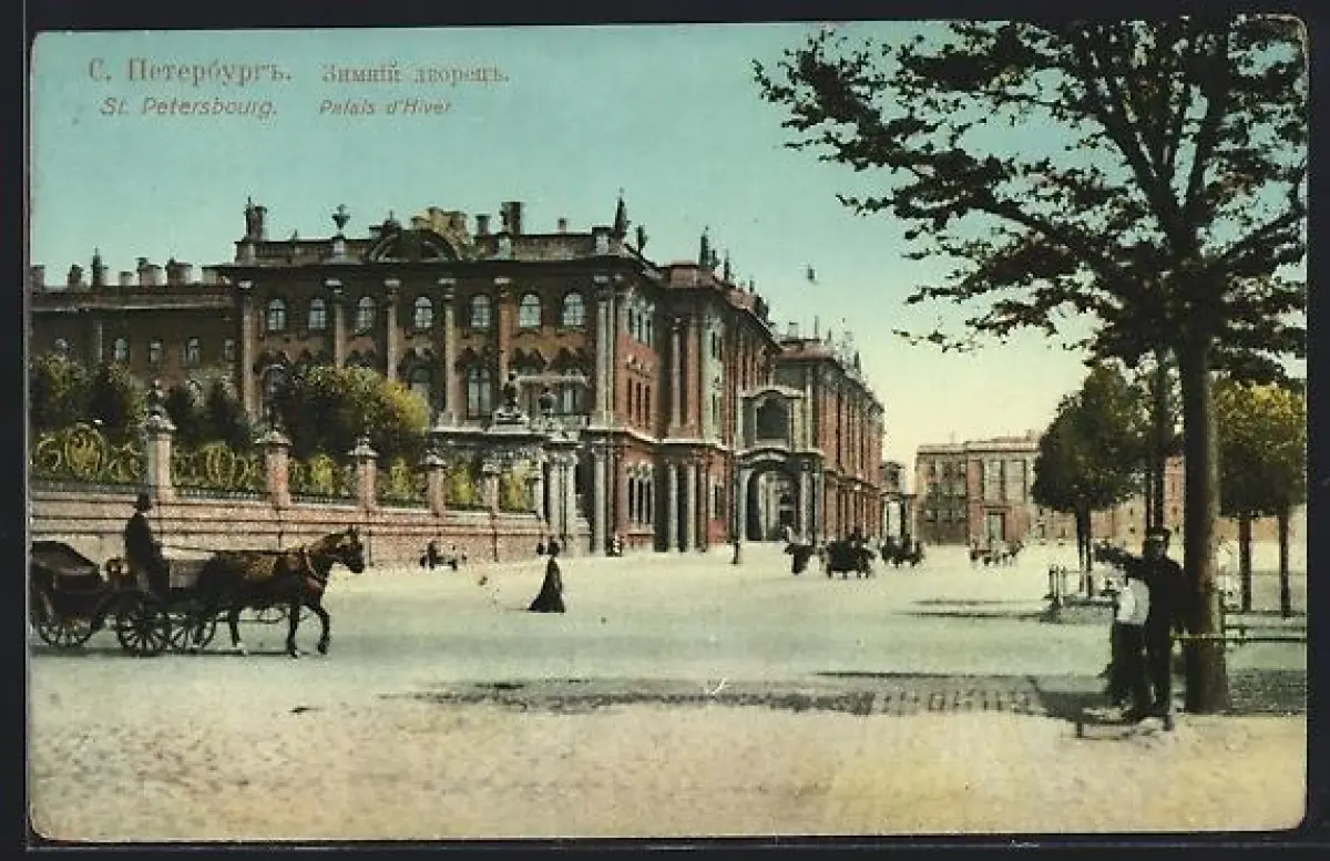 AK Sankt-Petersburg, Winterpalast, Pferdekutschen