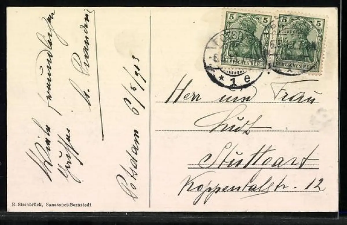 alte Ansichtskarte, gelaufen 1913, Stempelspur, guter Zustand