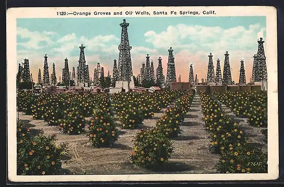 AK Santa Fe Springs, CA, Orange Groves and Oil Wells