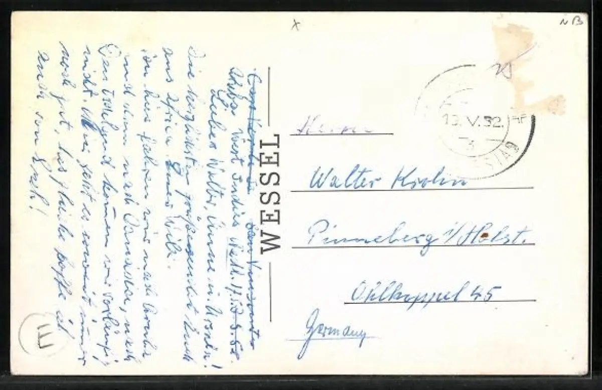 alte Ansichtskarte, gelaufen, Briefmarke entfernt, guter Zustand