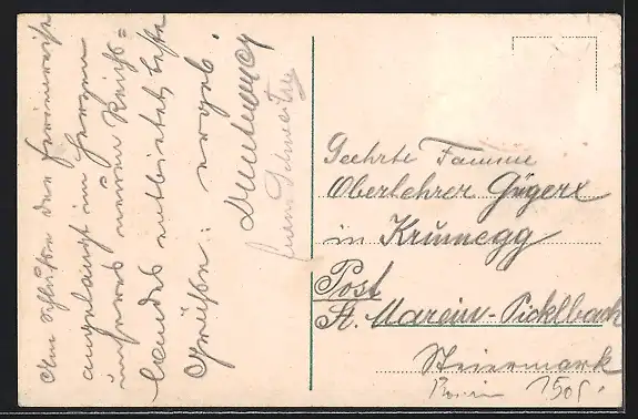 alte Ansichtskarte, gelaufen, Briefmarke entfernt, rückseitig Oberflächenschaden, Eckknicke oben li. und unten re., guter Zustand