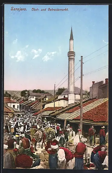 AK Sarajevo, Händler auf dem Obst- und Getreidemarkt