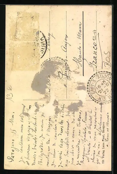 alte Ansichtskarte, gelaufen, Briefmarke entfernt, rückseitig Oberflächenschaden, guter Zustand