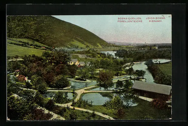 AK Sarajevo, die Bosna-Quellen, an den Forellenteichen
