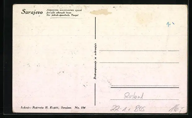 AK Sarajewo, Der jüdisch-spanolische Tempel, Synagoge