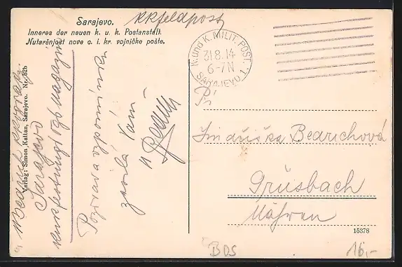 AK Sarajewo, Inneres der neuen k. u. k. Postanstalt