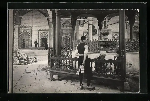 AK Sarejevo, Männer in landesüblichen Kleidern am Brunnen