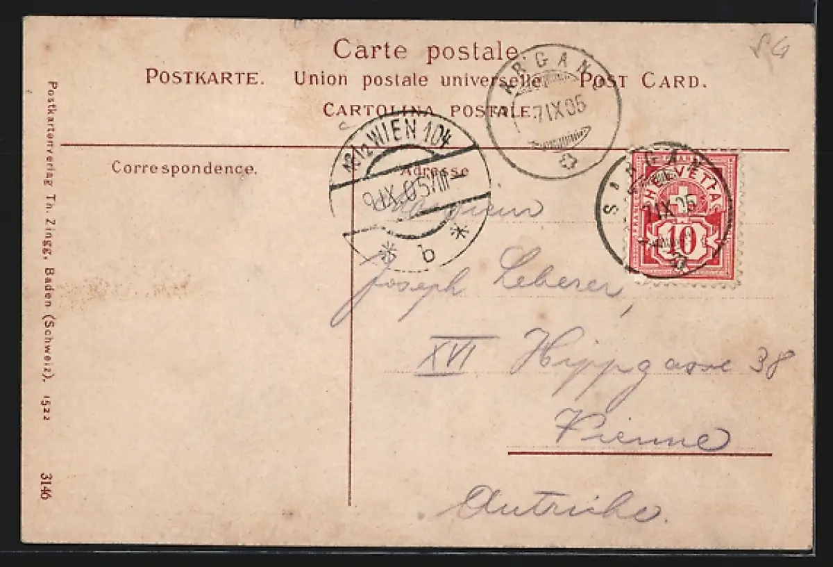 alte Ansichtskarte, gelaufen 1905, Stempelspur, guter Zustand