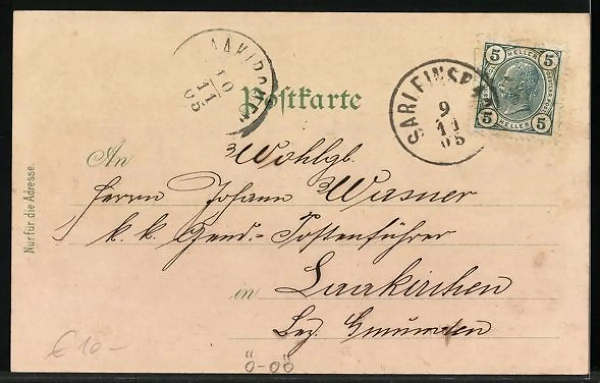 alte Ansichtskarte, gelaufen 1905, Stempelspur, guter Zustand