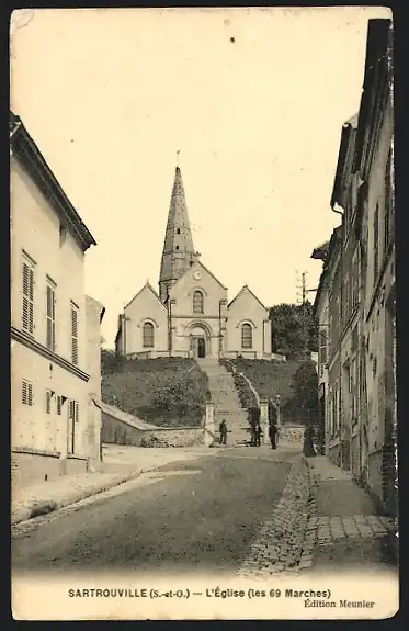 AK Sartrouville /S.-et-O., L`Église, les 69 Marches