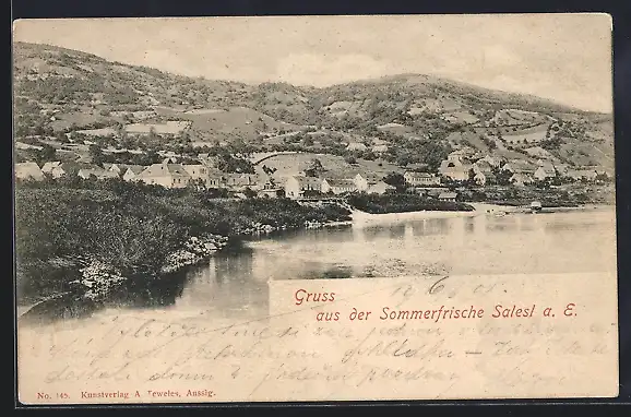 AK Sasesl a. E., Ortsansicht aus der Vogelschau