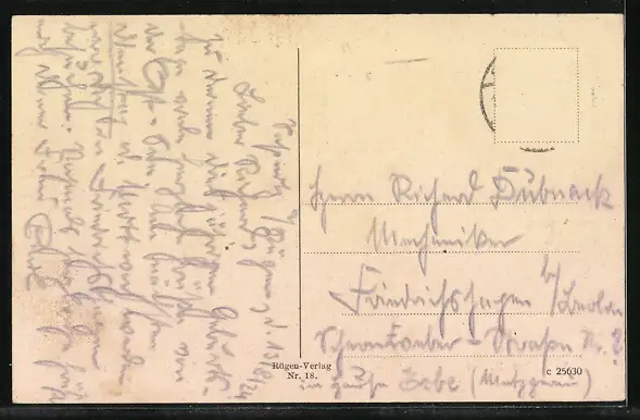 alte Ansichtskarte, gelaufen, Briefmarke entfernt, guter Zustand
