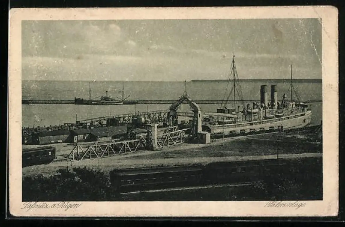 AK Sassnitz a. Rügen, Dampfer in der Fähranlage