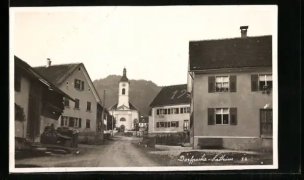 AK Satteins, Dorfplatz mit Blick zur Kirche