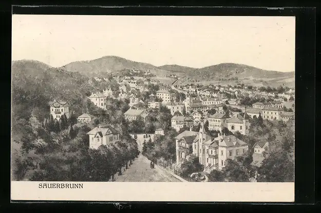 AK Sauerbrunn, Ortsansicht aus der Vogelschau
