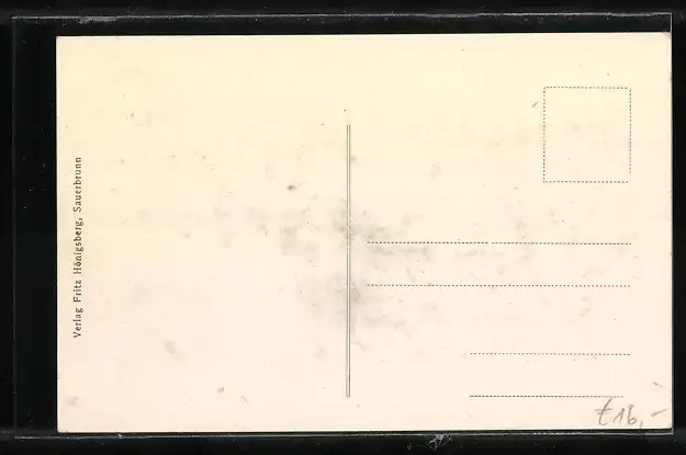 Personenbezogene Daten auf der Rückseite der Karte wurden durch blauen Textmarker unkenntlich gemacht. Die blauen Stellen sind auf die Vorderseite durchgeweicht und wirken sich negativ auf das Postkartenfoto aus