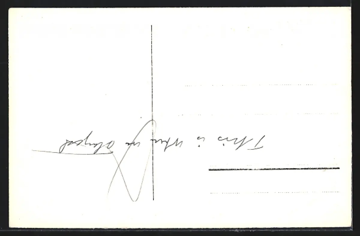 Personenbezogene Daten auf der Rückseite der Karte wurden durch blauen Textmarker unkenntlich gemacht. Die blauen Stellen sind auf die Vorderseite durchgeweicht und wirken sich negativ auf das Postkartenfoto aus